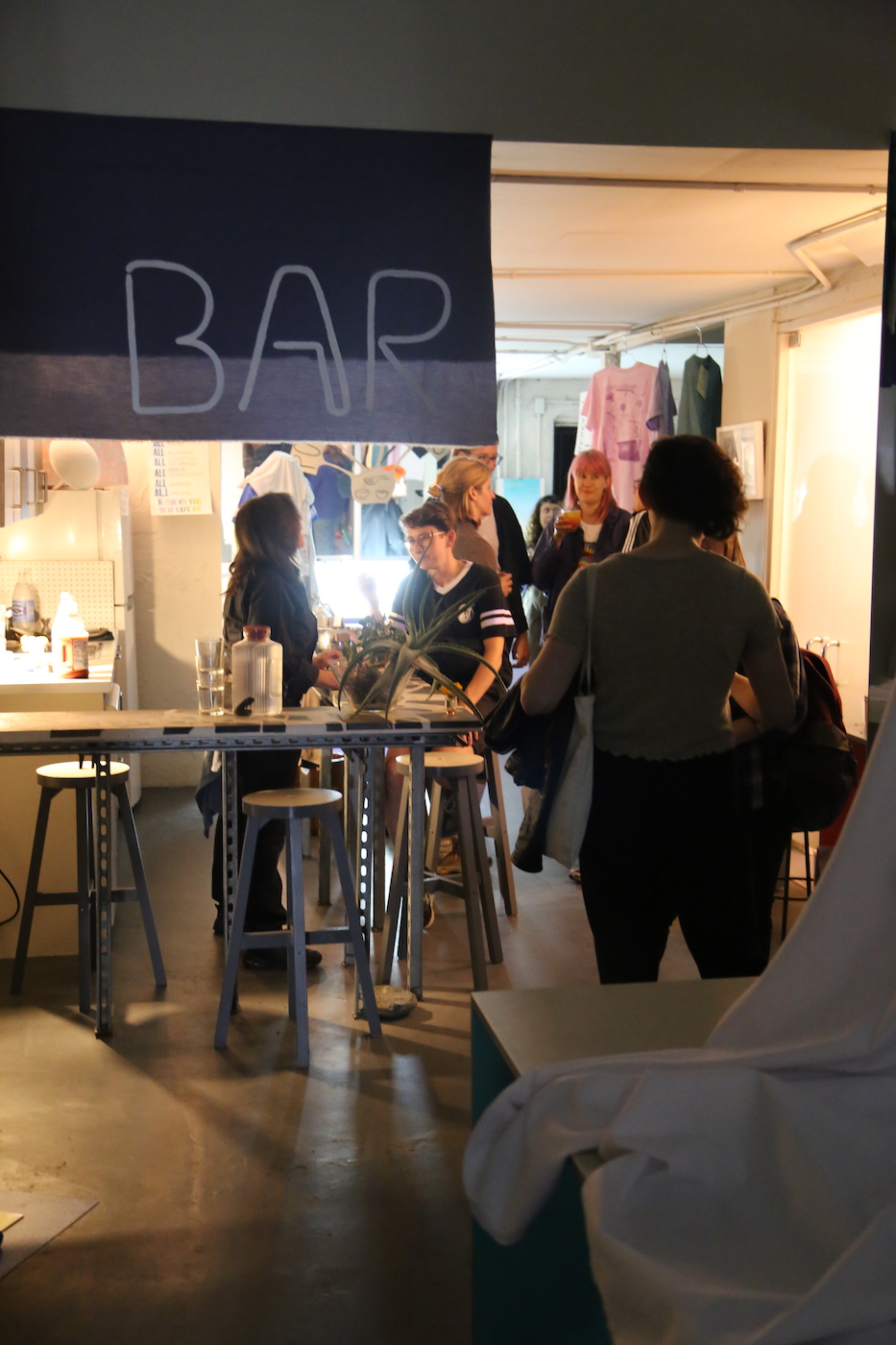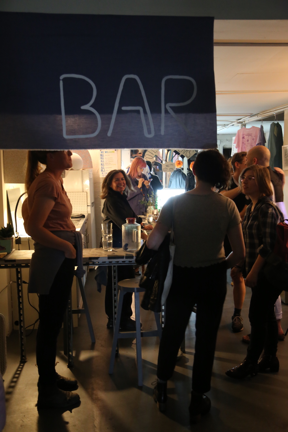 various material (audio file “the voice of the lesbian bar“ (42 min), music playlist “lesbian hits“, fabrics, cardboard, wood, paint, markers, 5x s/w archives retro prints, t-shirts, blossoms, plants, water, juice, thyme, apple, chocolate)