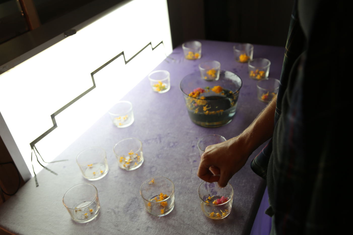 Mixed Media (Audiodatei „the voice of the lesbian bar“ (42 min), Musik Playliste „Lesbian Hits“, Stoffe, Pappe, Holz, Farbe, Stifte, 5x s/w Archiv Repro Prints, T-Shirts, Blüten, Pflanzen, Wasser, Saft, Thymian, Apfel, Schokolade)